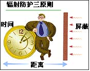<1>时间防护—缩短受照时间:缩短受照时间是简易而有效的防护措施,为此应避免一切不必要的在辐射场逗留,即使工作需要,也尽量缩短在辐射场逗留时间。