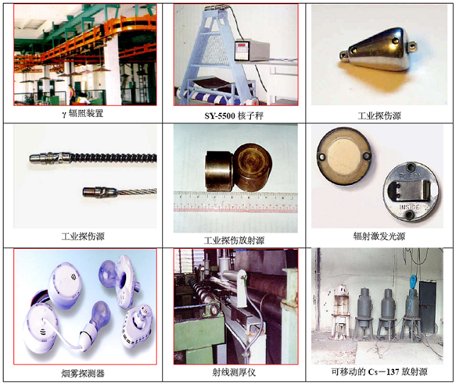 工业用源 还有许多放射源在工业上用于产品辐照、射线照相和计量等方面。全世界有大量的工业辐照装置。它们是包含大量放射性的巨型装置,通常被用于医用产品(例如注射器)消毒和食品保鲜。用于工业辐照装置的放射性元素主要是金属钴-60,构成放射源的数以千计的钴-60小丸装在大量“棒条”内,但是一些装置仍配备铯-137源。
