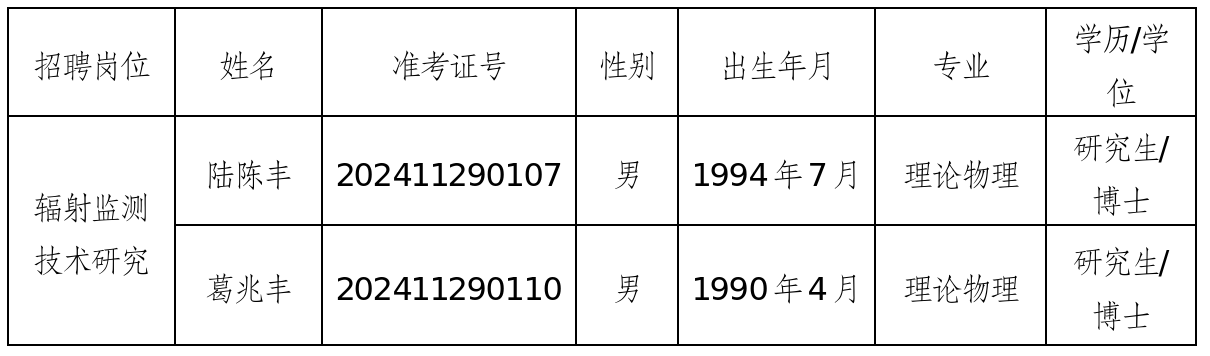 浙江省辐射环境监测站拟聘用人员公示