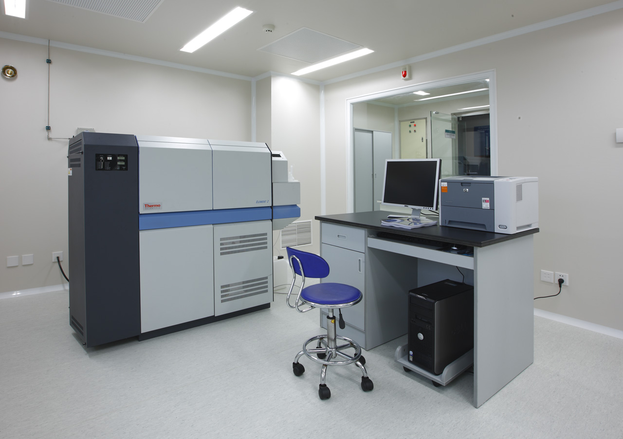 质谱仪测量是近几十年来迅速发展的无机微量及超痕量元素分析检测技术之一。质谱仪实验室洁净度等级达到了10000,配有一台高分辨率电感耦合等离子体质谱仪(ICP-MS),用于同位素测量。